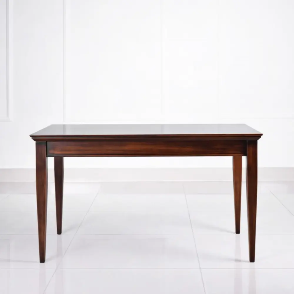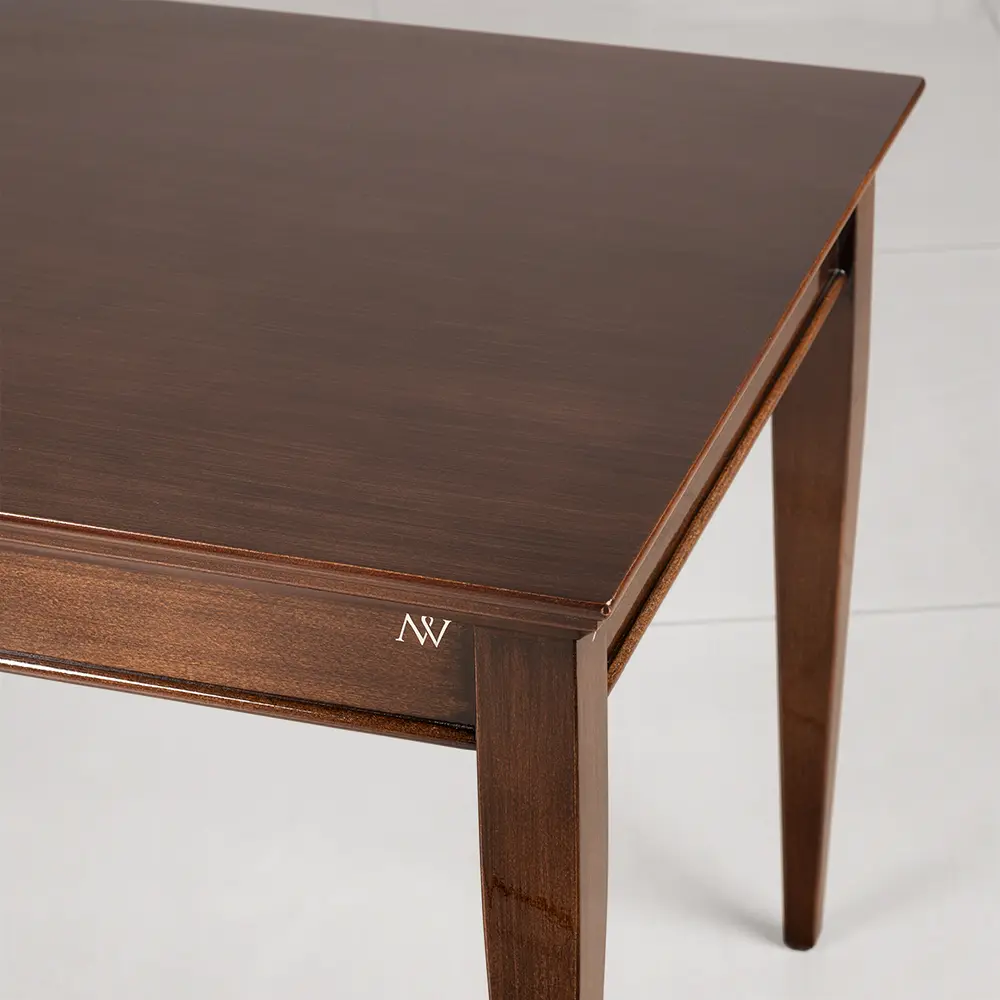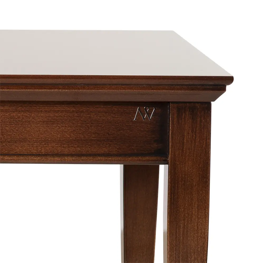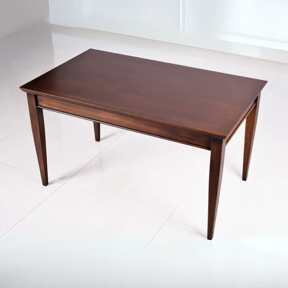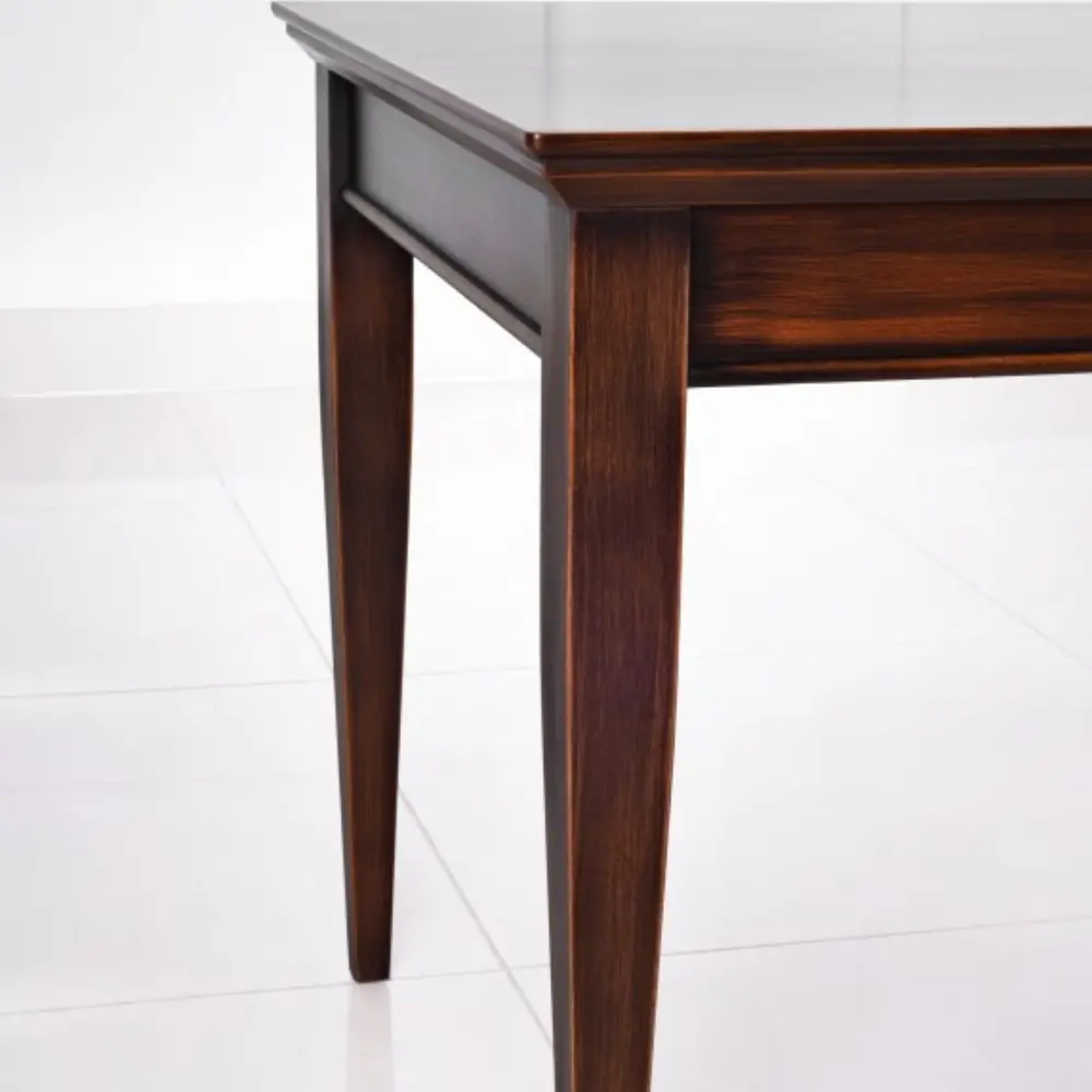 Ława na lekko zwężających się nogach. W zależności od wybarwienia może być stonowanym lub ekstrawaganckim elementem salonu. Dostępne są różne wymiary blatu w wersji kwadratowej, prostokątnej, owalnej i okrągłej. Istnieje również możliwość zastosowania szyby oraz półki pod blatem.