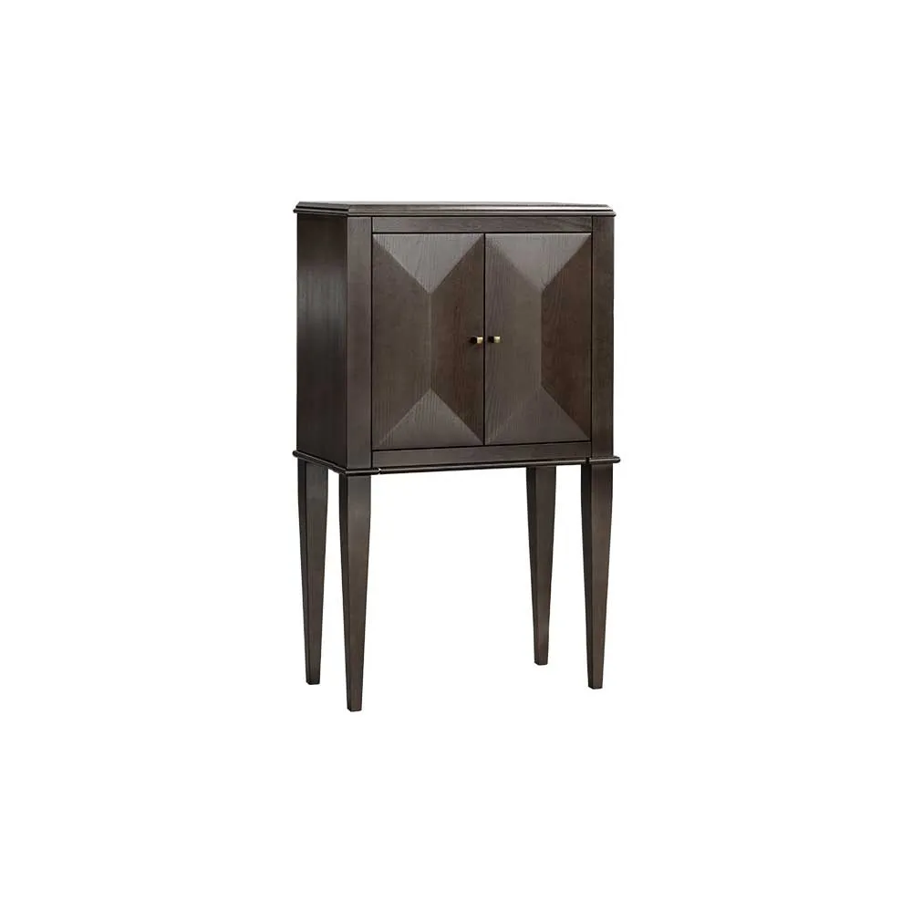 Komoda Emma to propozycja w stylu New Look. Kubiczny korpus osadzony jest na wysokich smukłych nogach, zwężających się delikatnie ku dołowi. Przestrzenne, kopertowe fronty nadają Emmie eleganckiego, nowoczesnego charakteru. Komoda wykonana jest brązie, o głębokim, chłodnym odcieniu. Wybarwienie to subtelnie podkreśla rysunek naturalnego drewna. To mebel dla osób, które cenią szlachetność materiałów i precyzję wykonania – znajdziecie je w każdym detalu tej wyjątkowej propozycji.