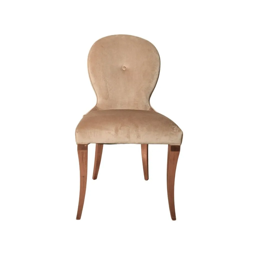 Zestawienie wygody i luksusu w jednym; krzesło o idealnych proporcjach, ubrane w przyjemną w dotyku tkaninę . Smukłe nóżki w kolorze miedzi doskonale komponują się z jasną tapicerką. Capri to idealne krzesło do eleganckiej jadalni, sprawdzi się też jako singiel przy biurku czy toaletce.