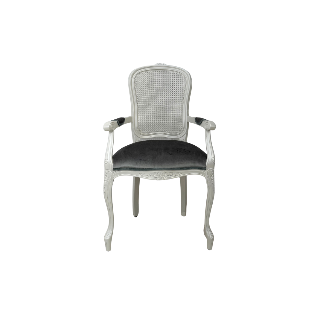 Doskonale sprawdzi się we współczesnej jadalni, a także jako elegancki dodatek do toaletki lub biurka. Jego design czerpie inspirację z XVIII-wiecznych francuskich salonów, doskonale wpisując się w powracający trend klasycznego luksusu. Projektanci zadbali o detale, tworząc smukłą ramę z misternymi rzeźbieniami oraz oparcie z eleganckiej plecionki wiedeńskiej, które osadzili na stylowych, wygiętych nogach. Dzięki temu krzesło wyróżnia się lekką, a zarazem stabilną konstrukcją. Krzesło Provansal z podłokietnikiem to doskonały wybór dla miłośników światowego wzornictwa, którzy cenią oryginalne formy i ponadczasowy styl z nutą luksusu.