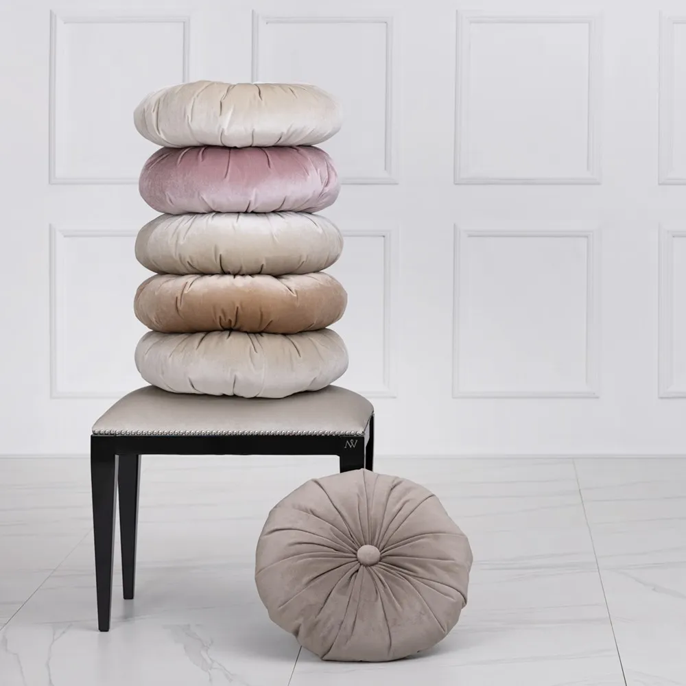 Okrągła poduszka dekoracyjna ręcznie wykonana; miękka i przytulna.