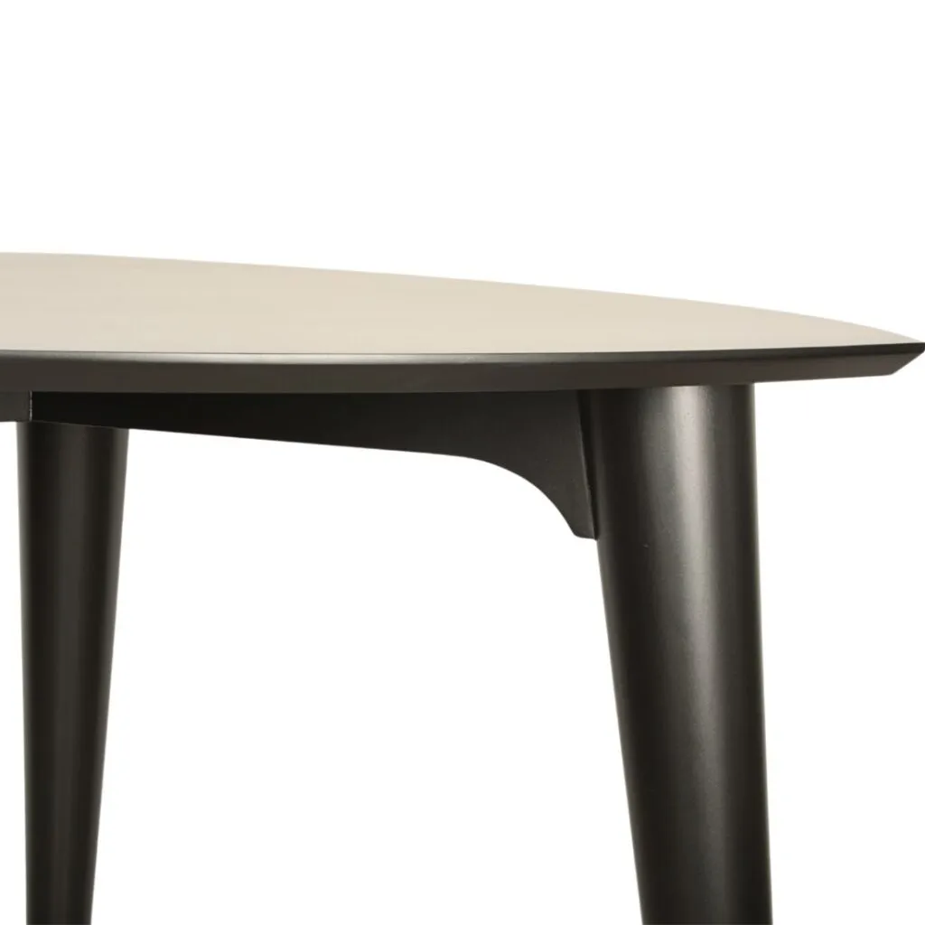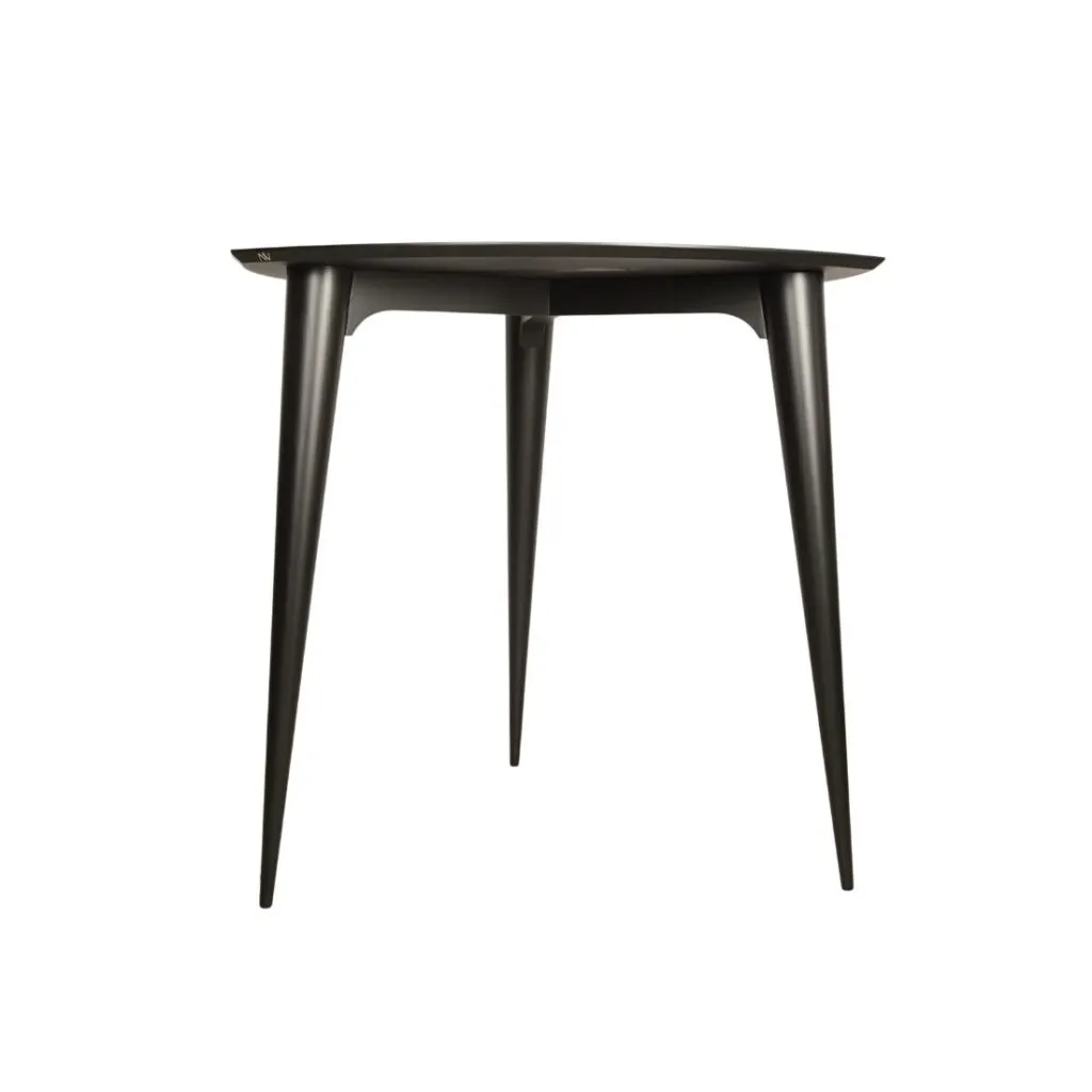 Stół barowy to esencja nowoczesnej elegancji. Jego oryginalny, nieregularny kształt blatu w połączeniu z delikatnie zwężanymi, stożkowatymi nogami tworzy formę, która zachwyca lekkością i wyrafinowaniem. W całości utrzymany w głębokim odcieniu czerni – doskonale odnajdzie się w przestrzeniach o industrialnym, nowoczesnym lub loftowym charakterze.