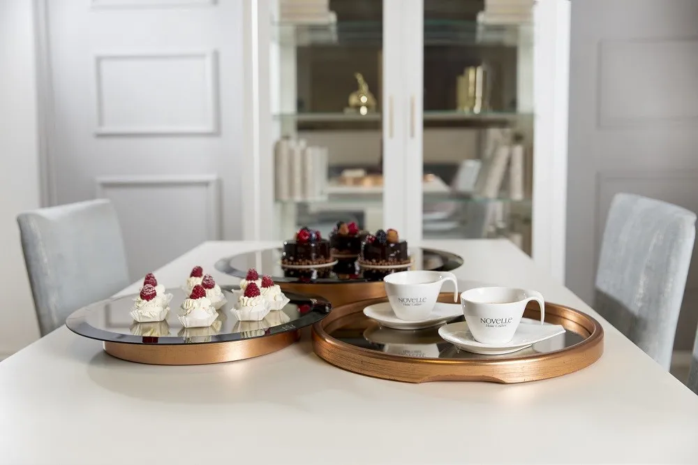 Taca Ron to autorski projekt Novelle, wchodzi w skład kolekcji tac lustrzanych ręcznie robionych z najwyższą dbałością o każdy szczegół.