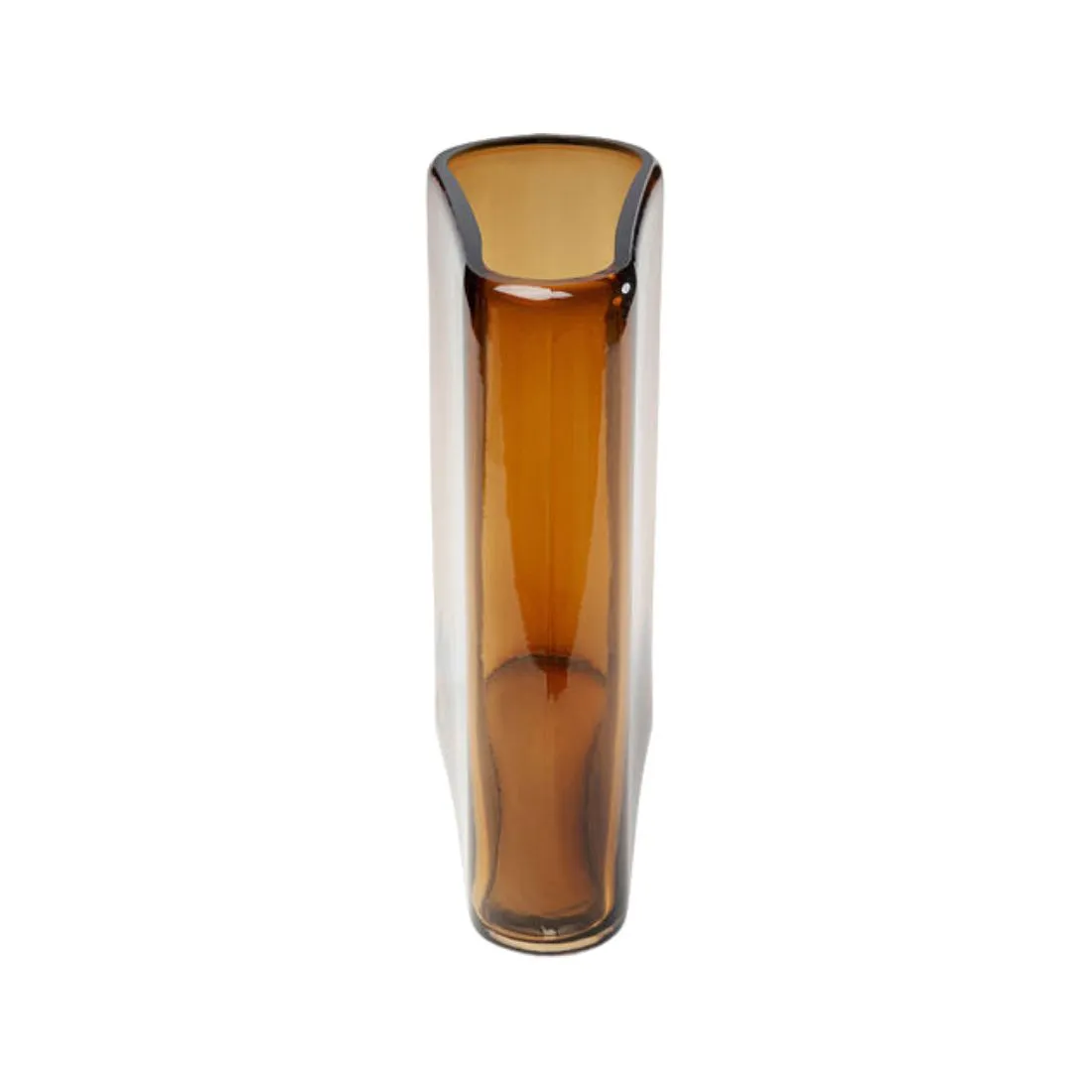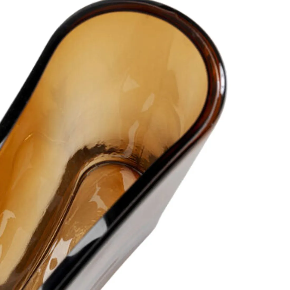 Minimalistyczny kształt, charakterystyczna linia to elegancki wazon w kolorze transparentnego brązu.
