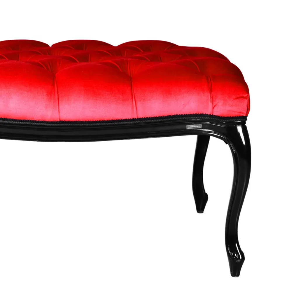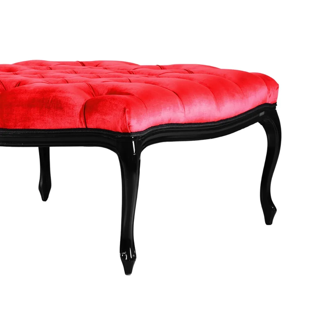 Puf Canada to nuta klasyki w oryginalnej formie. Smukłe delikatnie wygięte nóżki tworzą bazę dla wygodnego, ozdobnie pikowanego siedziska. Urok tego mebla został podkreślony czarnym wybarwieniem w wysokim połyku oraz miękką welurową tkaniną w odcieniu czerwieni. Puf idealnie sprawdzi się w salonie, sypialni, a nawet hallu.
