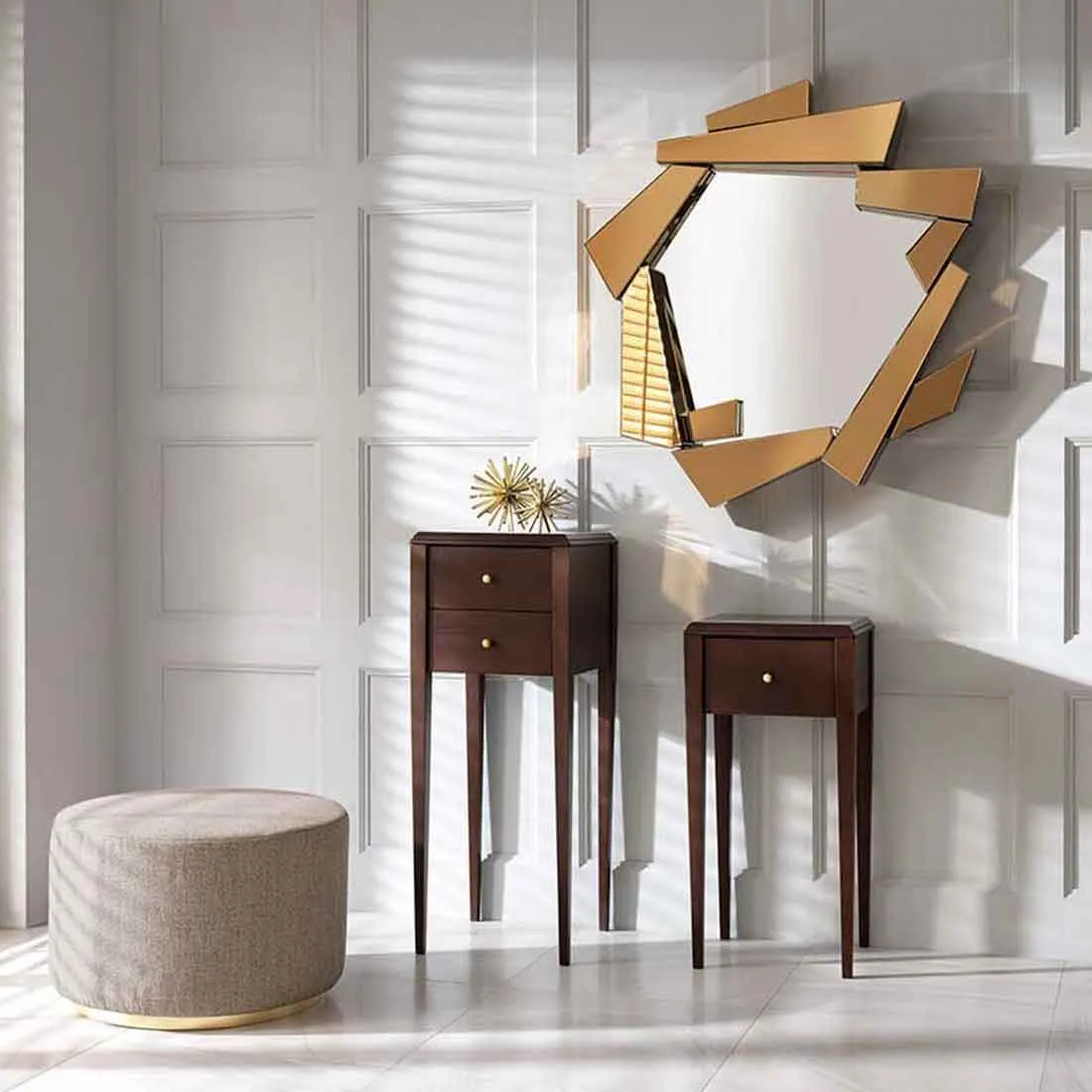 - Lustrzany blask w stylu glamour: Chcesz, by Twój salon zyskał klejnot w aranżacji? Ława PIA z blatem lustrzanym to czysta gra ze światłem. Lustrzana tafla nie tylko dodaje wnętrzu głębi, ale staje się biżuteryjnym akcentem, który definiuje styl modern classic. Dla spektakularnego efektu w większych przestrzeniach, jej siostrzana wersja, ława PIA o średnicy 100 cm, stanie się niekwestionowanym centrum strefy wypoczynku.