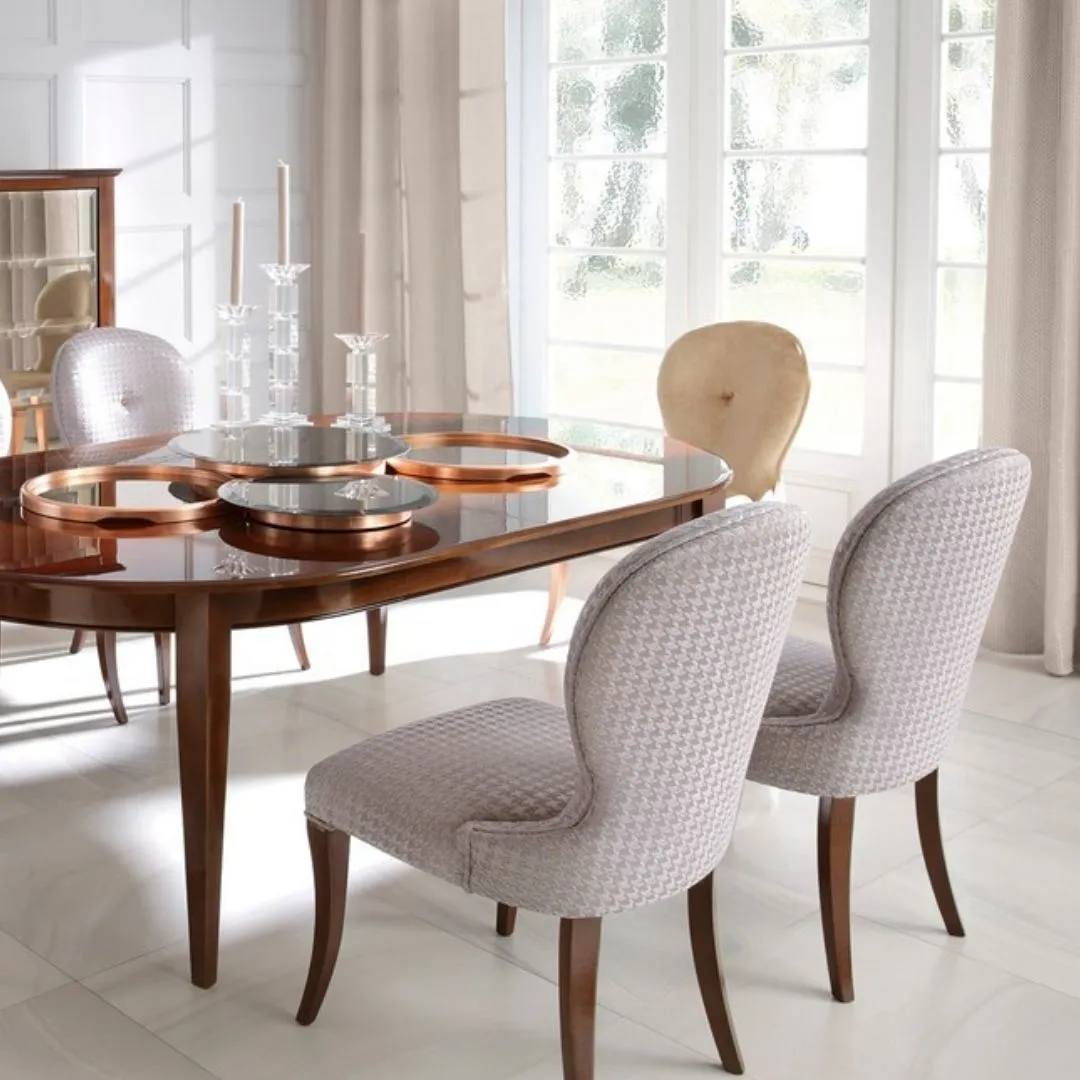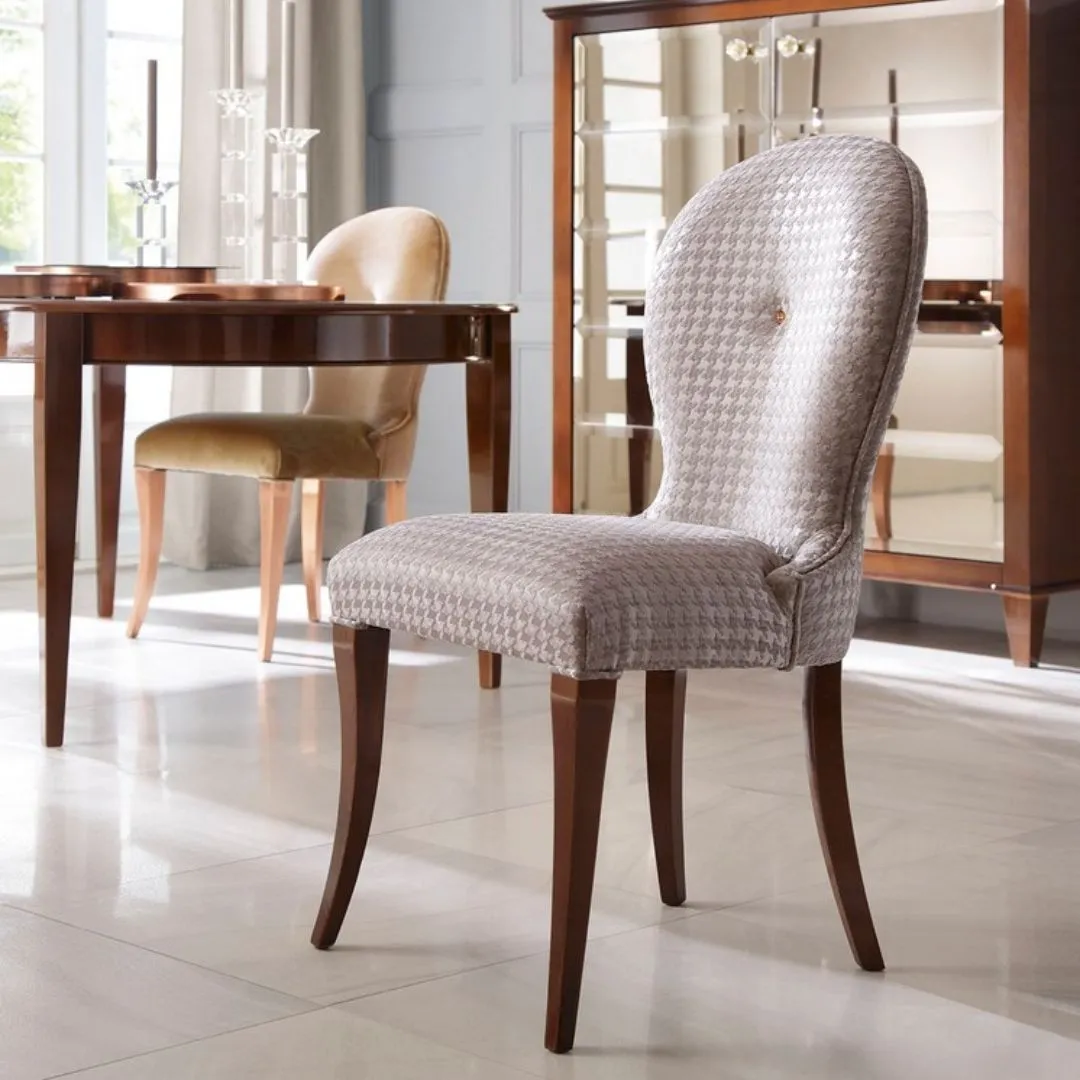 Krzesło sięgające form mebli stylowych. Eleganckie i zarazem bardzo wygodne, wsparte na smukłych, wygiętych nogach, co dodaje mu lekkości i wdzięku. Uwagę zwraca oparcie – górą zaokrąglone niczym krzesła Ludwika XVI i figlarnie przekłute pojedynczym pikowaniem z guzikiem, akcentującym miękkość tapicerki. Do wyboru są dwa warianty krzesła: obszerniejsze fotelikowe z...