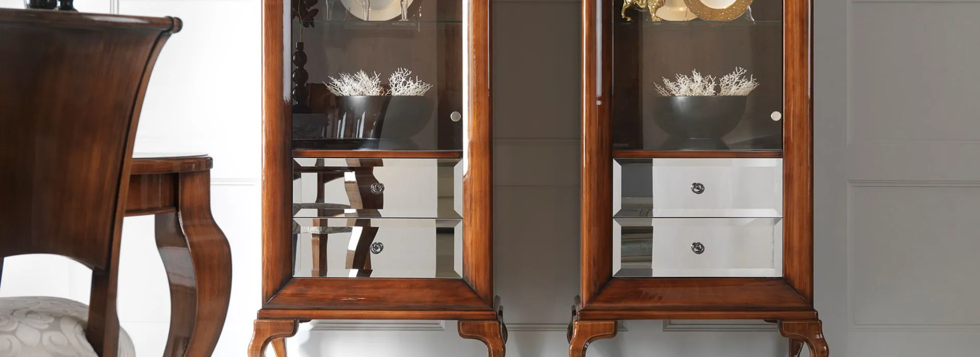 Kolekcja mebli nowoczesnych, które modyfikują formy stanowiące stylowy kanon. Cechuje je dawna dobra harmonia, niewymuszony wdzięk, dojrzała elegancja. Ten ekskluzywny wyraz potęgują wyraziste modernizacje – drzwi komód i fronty szuflad wykonane z luster, których sfazowane krawędzie dają efekt lśniących, oszlifowanych kryształów, ujętych w szerokie ramy korpusów. Luna to obszerna kolekcja mebli do salonu i jadalni. Są tu komody uniesione na wygiętych nóżkach, dodających im lekkości i wdzięku. Ich wybór jest bardzo duży: komody wyższe i niższe (w tym RTV), zamknięte drzwiami lub szufladami (pojedynczymi lub zwielokrotnionymi). Niektóre komody mają szuflady niewidoczne z zewnątrz. Wreszcie, są tu też przeszklone witryny, wyposażone w szuflady i podświetlane ciepłym światłem LED. Luna to także meble do sypialni: łóżka, szafki nocne, duże szafy i komody–bieliźniarki. Do wyboru są dwa rodzaje frontów. Rozświetlające wnętrze fronty wykonane z luster, srebrnych czy brązowych; ich sfazowane krawędzie tworzą gęsty, regularny rytm powtórzeń. Albo fronty bardziej klasyczne, płaskie, drewniane – barwione na kolor zgodny z korpusem lub na inny, kontrastowy. Połączenie estetyki klasycznej z nowoczesną ułatwi zestawienia mebli Luna z innymi z kolekcji Novelle, czy to zaawansowanymi stylowo, czy nowocześnie. Klasyczny, szczególnie elegancki charakter będą miały wybarwienia orzechowe i lakierowanie pół-mat czy na wysoki połysk. Zaś wybarwienia kryjące, np. biały zimny czy czarny z lakierowaniem na wysoki połysk odmienią wyraz tych mebli na zdecydowanie współczesny.