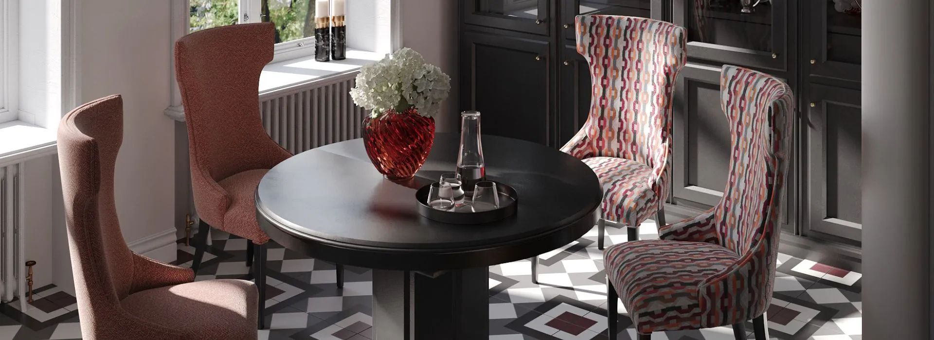 Stół o konstrukcji tak logicznej, że aż wydaje się konieczna. Okrągły blat – wspierająca go centralna kolumna – i stabilizująca całość stopa, optycznie odpowiadająca blatowi. Panującą tu symetrię uzupełniają klasycyzujące detale, i to dzięki nim całość zyskuje pełnię wyrazu: krawędź blatu łagodzi profilowanie, a centralną kolumnę zdobią rytmizujące okładki. Blat...