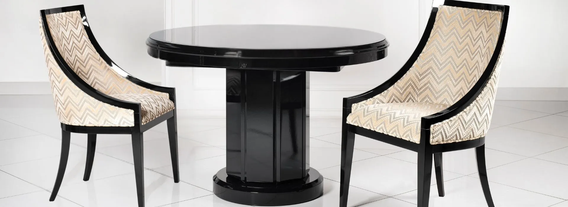 Stół o konstrukcji tak logicznej, że aż wydaje się konieczna. Okrągły blat – wspierająca go centralna kolumna – i stabilizująca całość stopa, optycznie odpowiadająca blatowi. Panującą tu symetrię uzupełniają klasycyzujące detale, i to dzięki nim całość zyskuje pełnię wyrazu: krawędź blatu łagodzi profilowanie, a centralną kolumnę zdobią rytmizujące okładki. Blat stołu może być okrągły – do wyboru są dwie średnice: 120 i 140 cm, obie można łatwo powiększyć jedną wkładką (+50 cm) na wygodnej prowadnicy synchronicznej; wkładkę przechowuje się na jej miejscu pod blatem. Blat może też być prostokątny – długości 165, 200 lub 240 cm, z jedną wkładką (+60 cm) – taki blat wspiera cokół prostokątny. Wybarwienie łatwo będzie wybrać z szerokiej palety Novelle. Stół stworzy udane zestawienia meblami z różnych kolekcji Novelle, czy to zaawansowanymi stylowo, czy nowocześnie: Elia, Bombato, Charme, Luna, Savoia.