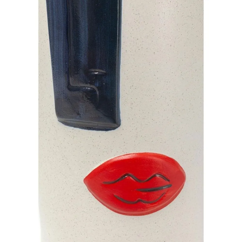 Wazon o prostej formie z nietypowym wizerunkiem twarzy, mocne akcenty kolorystyczne przykuwają uwagę, wprowadzając do wnętrza trochę energii. Oryginalna i ciekawa dekoracja w stylu Lux Vintage.