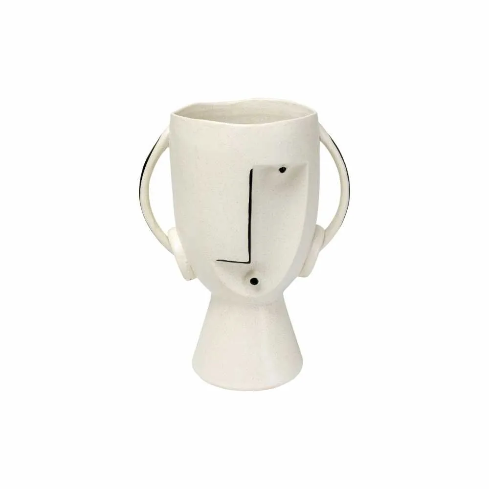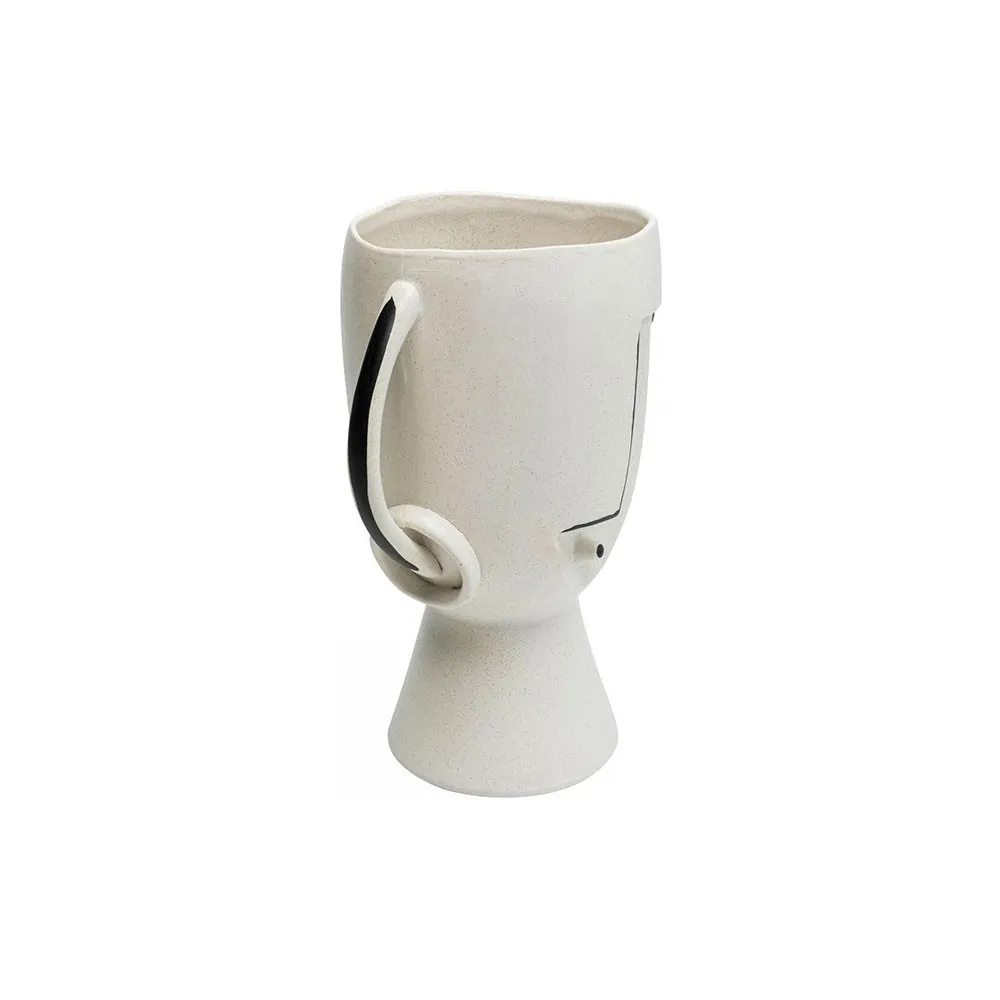 Wazon o nietypowej formie, z wizerunkiem twarzy; to awangardowa dekoracja w stylu vintage. Sprawi, że każde wnętrze nabierze oryginalności. Wazon wykonany jest z kamionki, w koloże beżowym z czarnymi akcentami. Idealnie sprawdzi się jako samodzielna dekoracja na stole, konsoli czy komodzie. Doskonale prezentuje się także z kwiatami dostępnymi w ofercie Novelle.