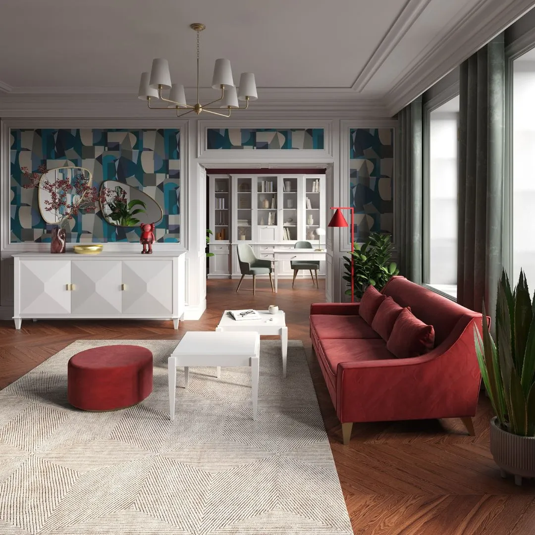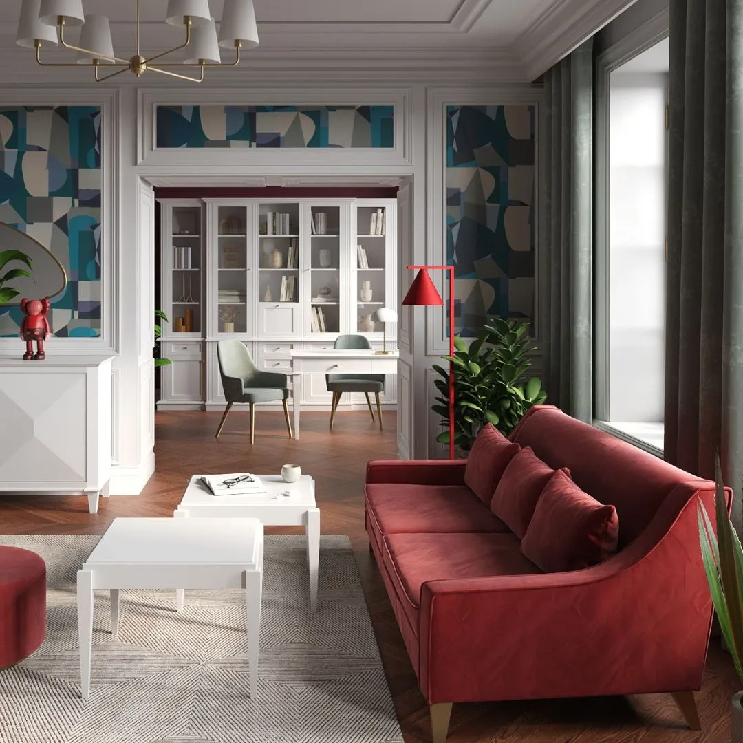 We wnętrzach inspirowanych paryską kamienicą tradycyjna architektura spotyka się ze współczesnym designem. Sztukaterie na ścianach i suficie, eleganckie listwy przypodłogowe czy zabytkowe drzwi w połączeniu z intensywnymi kolorami, nadają przestrzeni wyrazistego charakteru. Dodatkowo, możemy bawić się geometrycznymi wzorami tapet, tkanin i dywanów. Mieszając je z klasycznymi elementami w stonowanych barwach, tworzymy niepowtarzalną atmosferę. W rezultacie całość tworzy niepowtarzalną atmosferę, w której elegancja splata się z artystyczną wolnością.