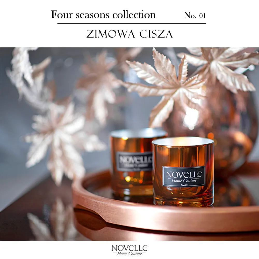 Świeca z autorskiej kolekcji Novelle Four Seasons; ZIMOWA CISZA to harmonijna i odprężająca kompozycja zapachowa, stworzona na bazie aromatycznej czarnej porzeczki, słodkiej wanilii oraz kojącej, świeżej jodły. Otuli Cię spokojem i ciepłem, idealna na chwile wytchnienia i relaksu. Piękna dekoracja wnętrza, idealny prezent dla bliskich lub współpracowników.